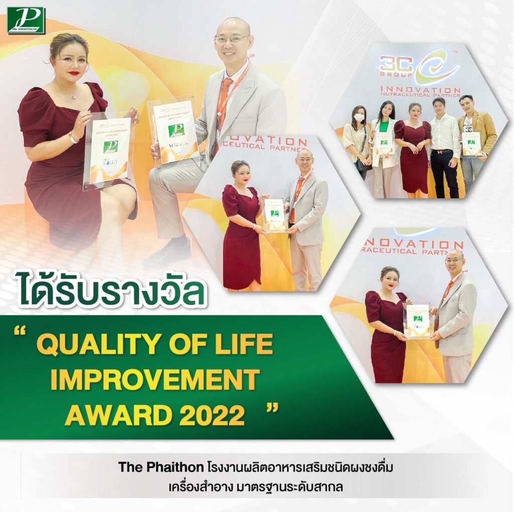 คุณอุไรวรรณ อาจศัตรู ผู้บริหาร โรงงาน เดอะไพร์ทอนเข้ารับรางวัล Quality of life improvement award 2022 จาก บริษัท 3C INNOVATION